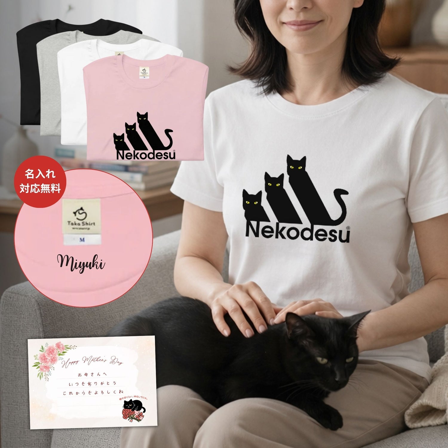 母の日のTシャツを買いましたが母はもういないので自分用に買いました。とっても可愛いです。生地がしっかりしていて肌触りも良いので着やすいです。ありがとうございました。