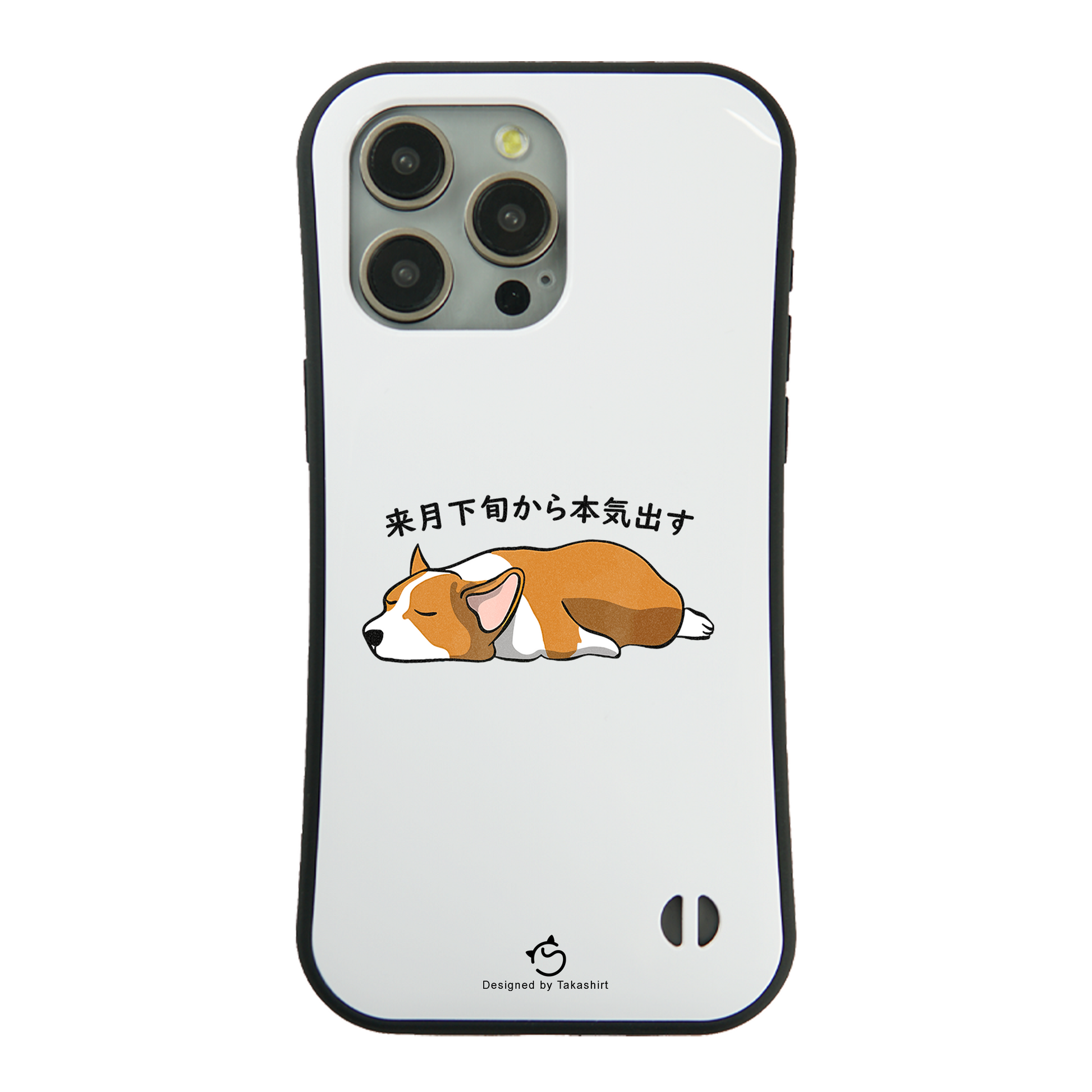 ケース いぬ 犬 イラストCorgi犬 来月下旬から本気出す スマホ ケース iPhone8, SE2, SE3 ~ ケース iPhone16シリーズ