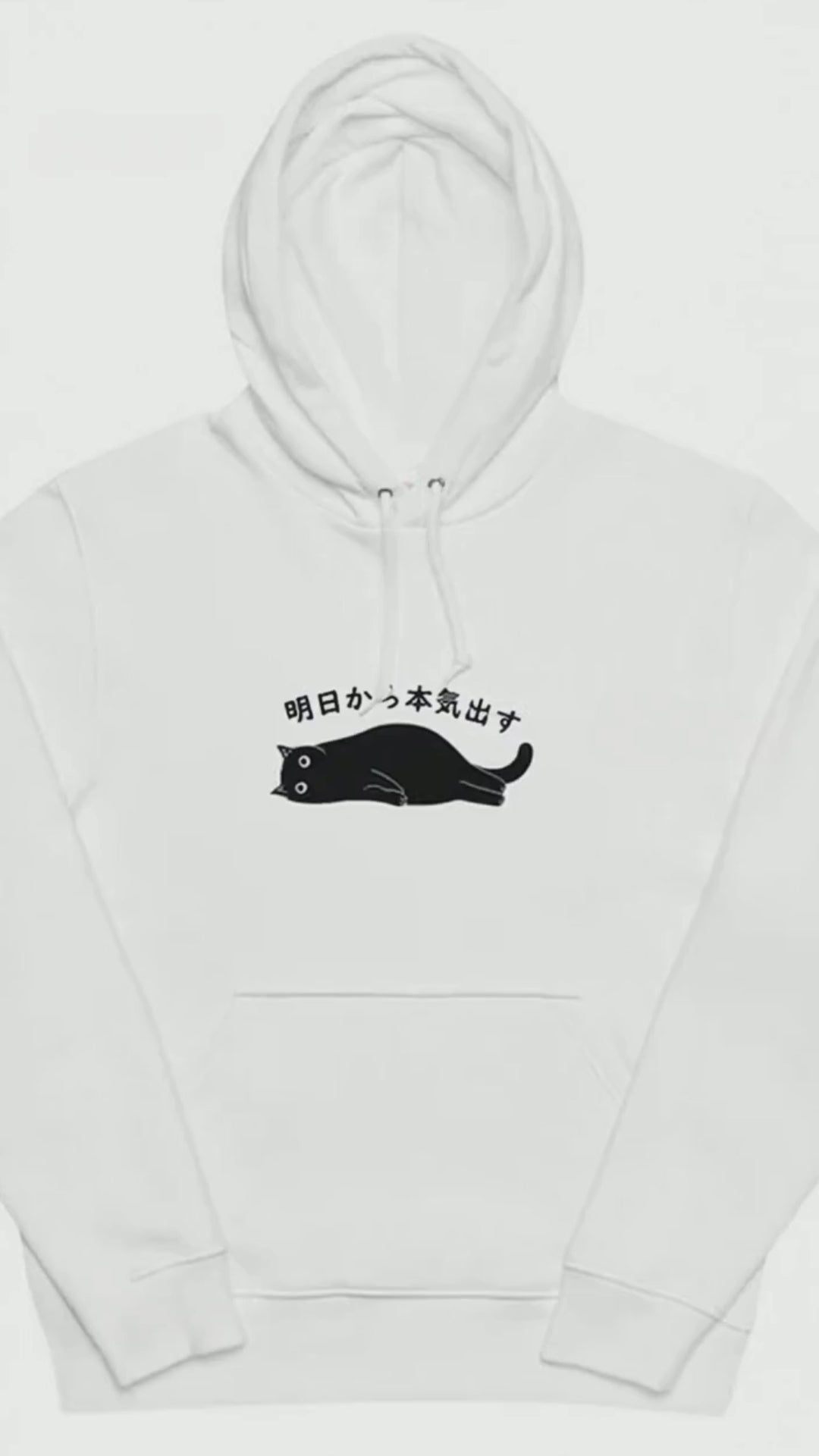 猫 パーカー ねこ かわいい 猫イラスト 明日から本気出す|アダルト&キッズサイズ