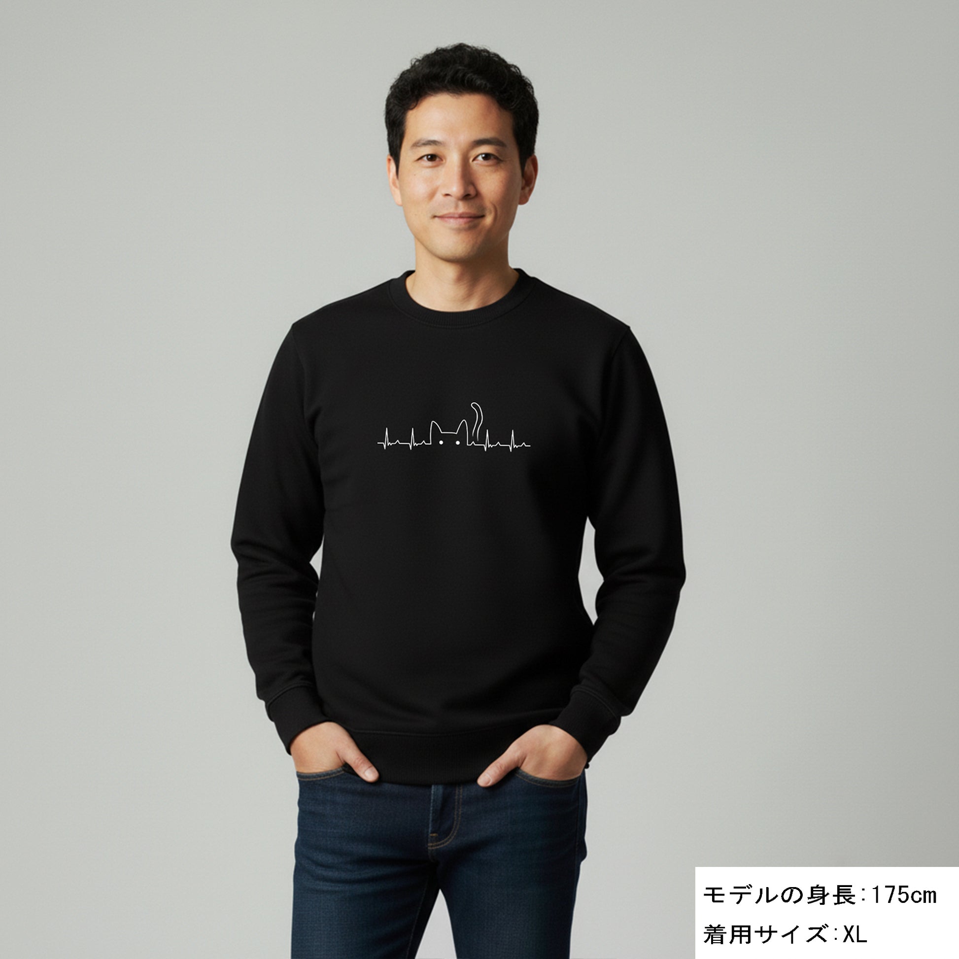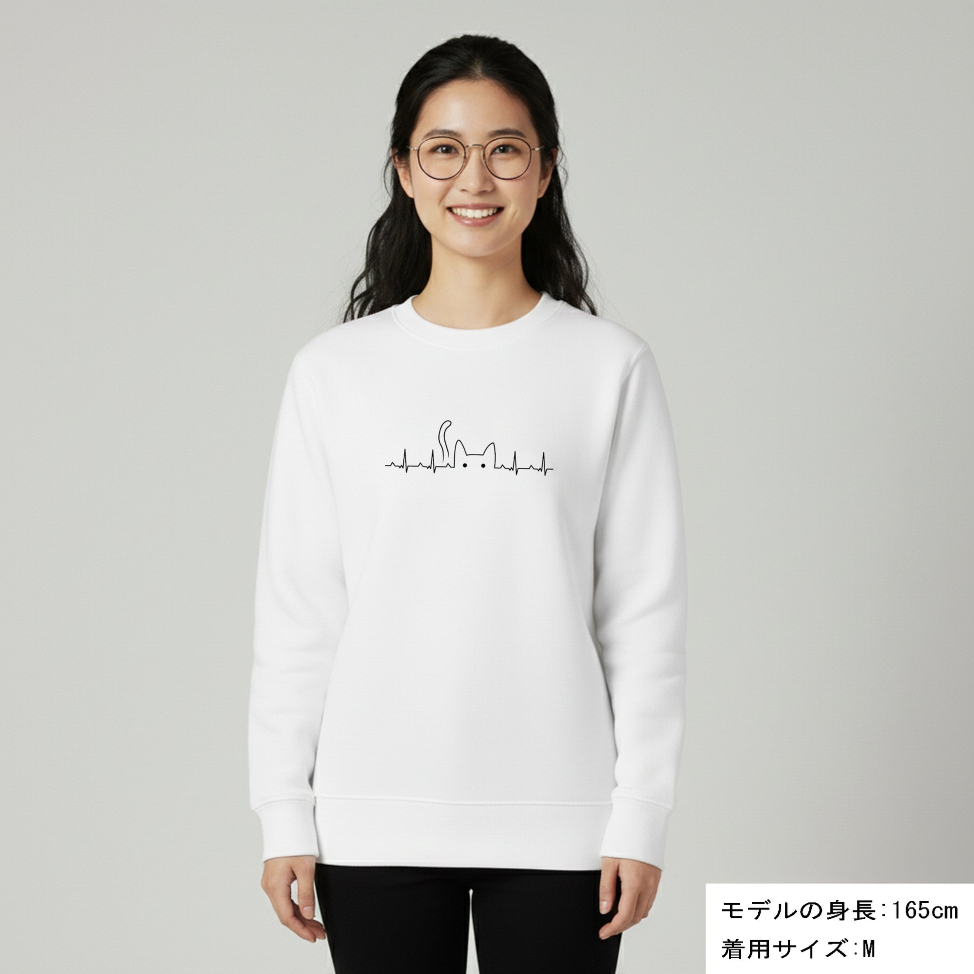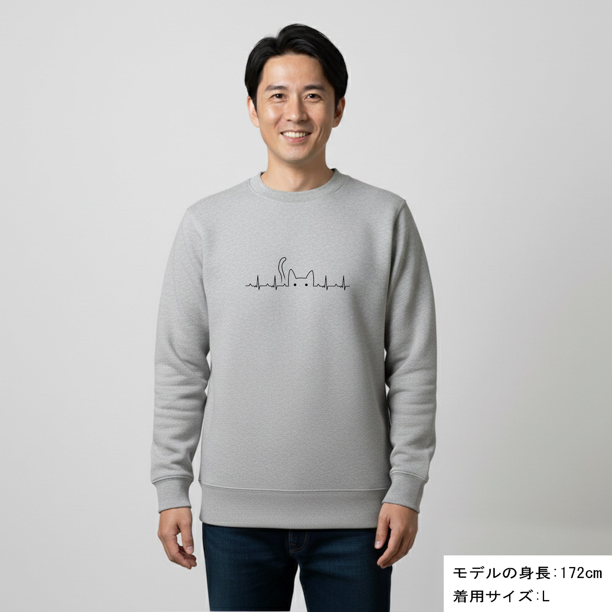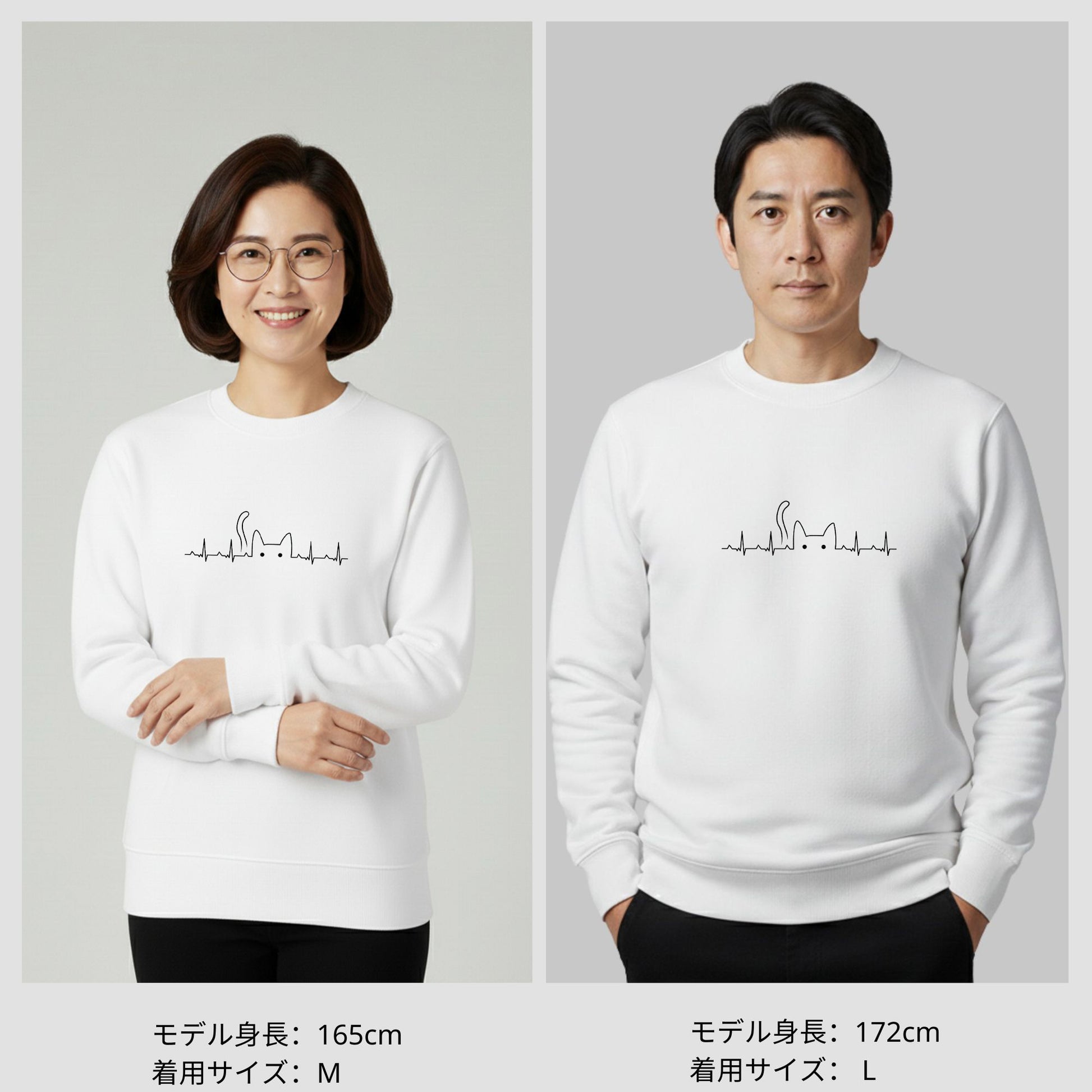 猫 トレーナー ねこ かわいい 猫イラストハートビート 心電図 |アダルト&キッズサイズ