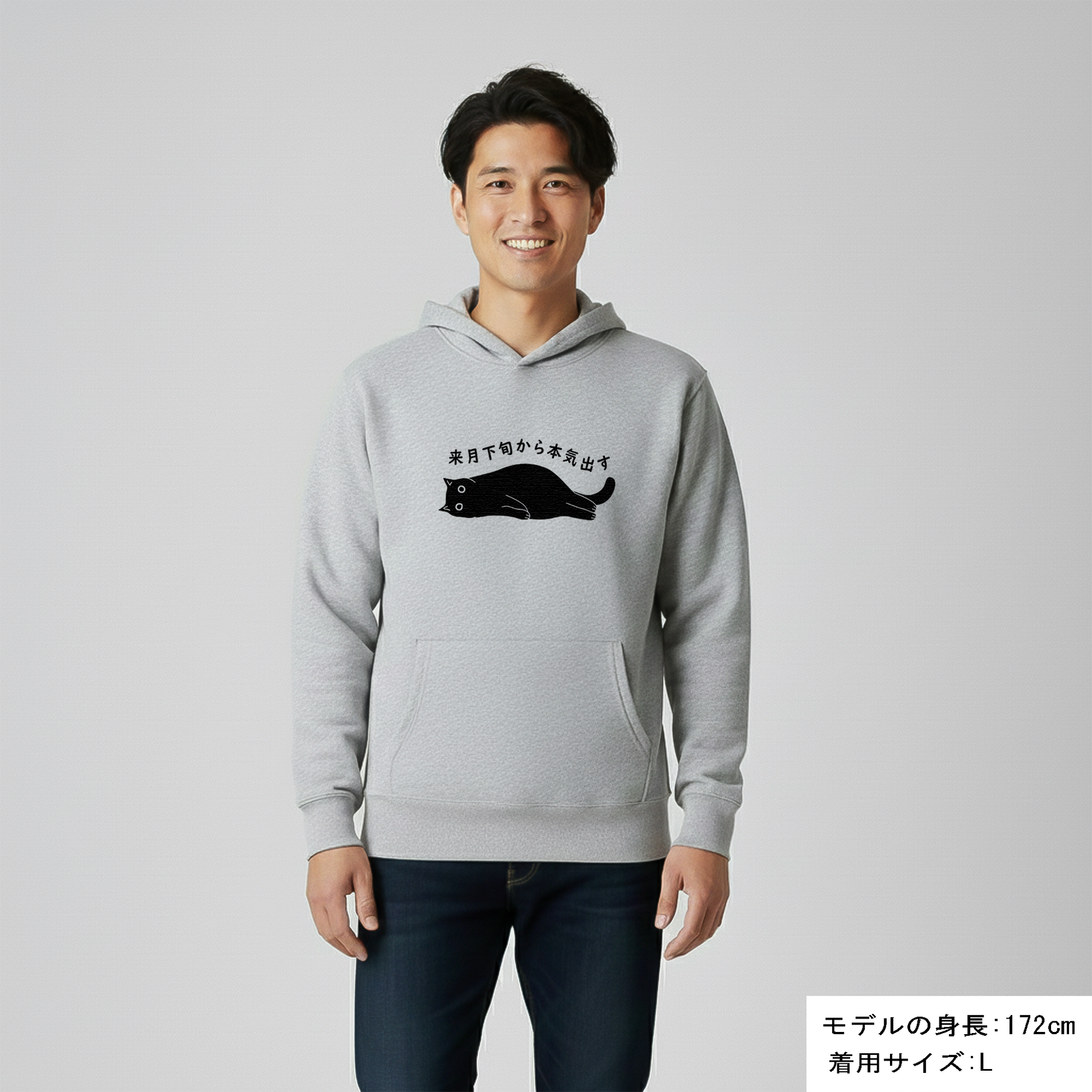 猫 パーカー ねこ かわいい 猫イラスト来月下旬から本気出す |アダルト&キッズサイズ
