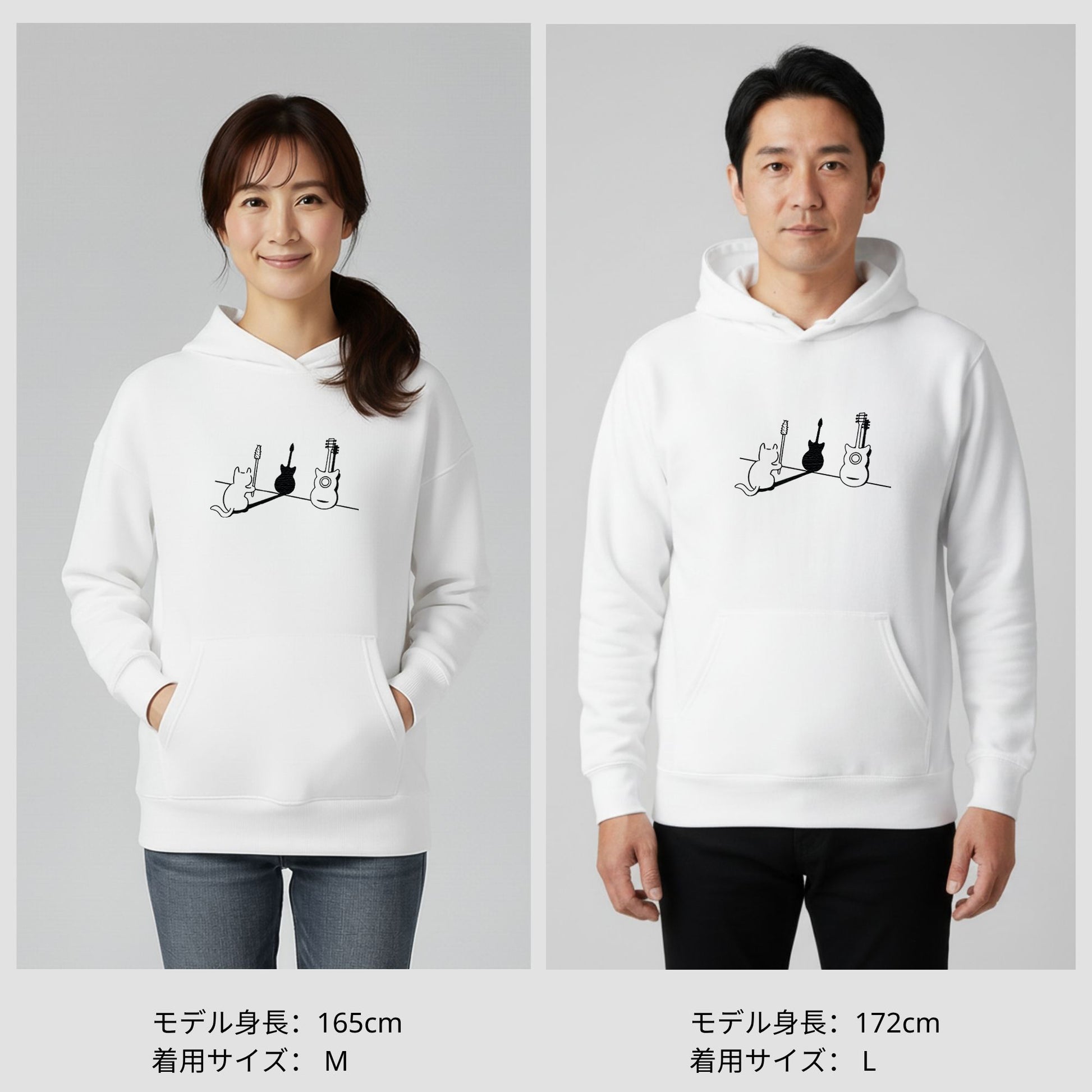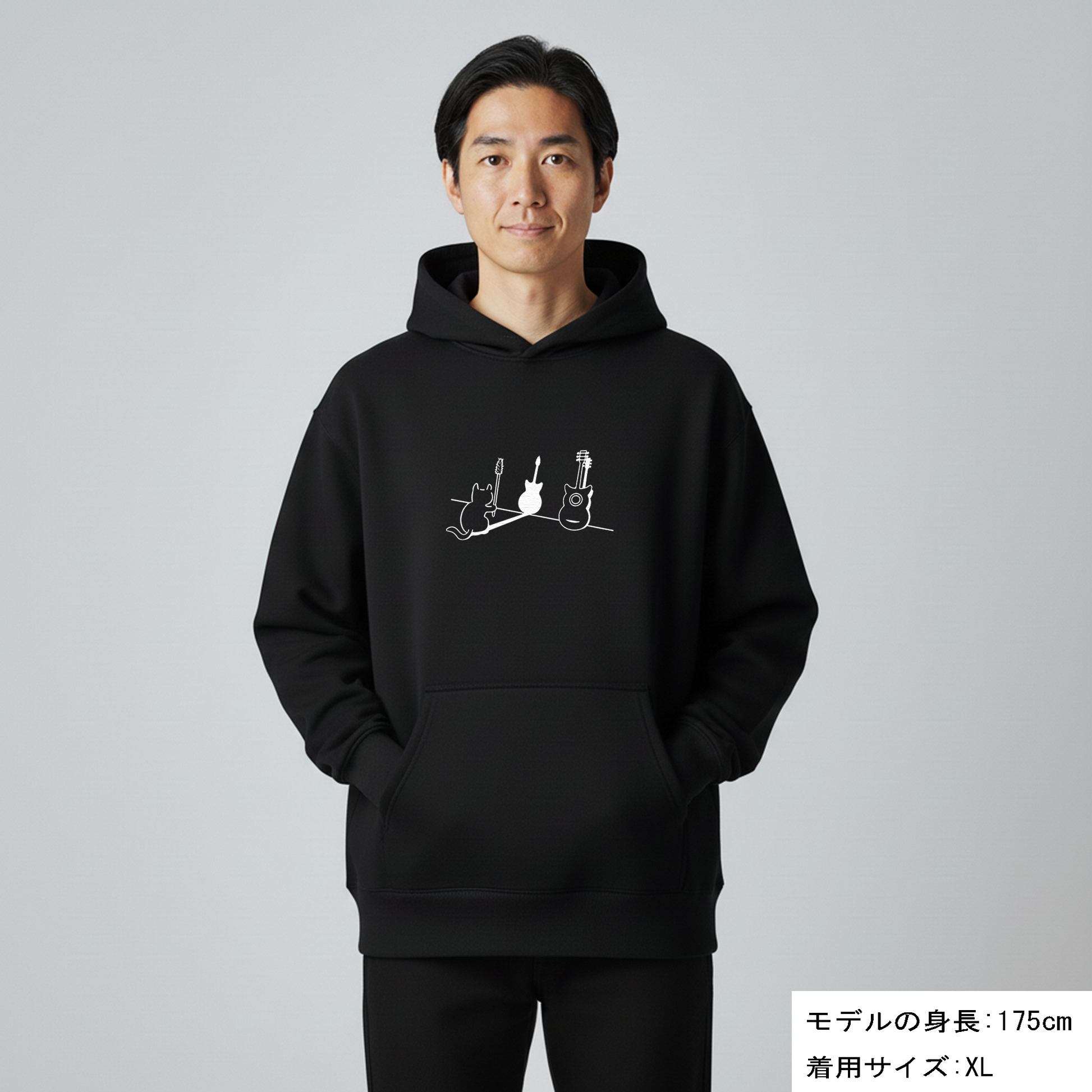 パーカーの着心地が良く、快適に過ごされているとのことで、大変嬉しく思います。ギターのデザインを選んでいただき、ユニークさを楽しんでいただけたようで何よりです。