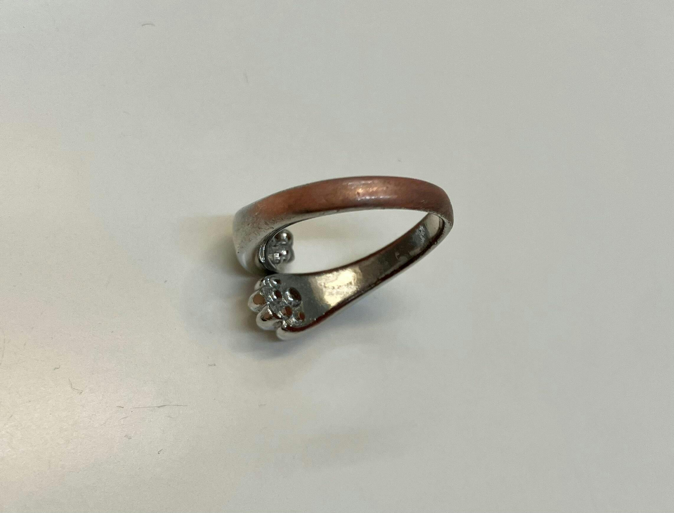 ただ、3ヶ月経つとメッキが禿げたのか、指側と、内側の縁取りが赤銅色になってきて指に黒い跡がつくようになってしまいました。