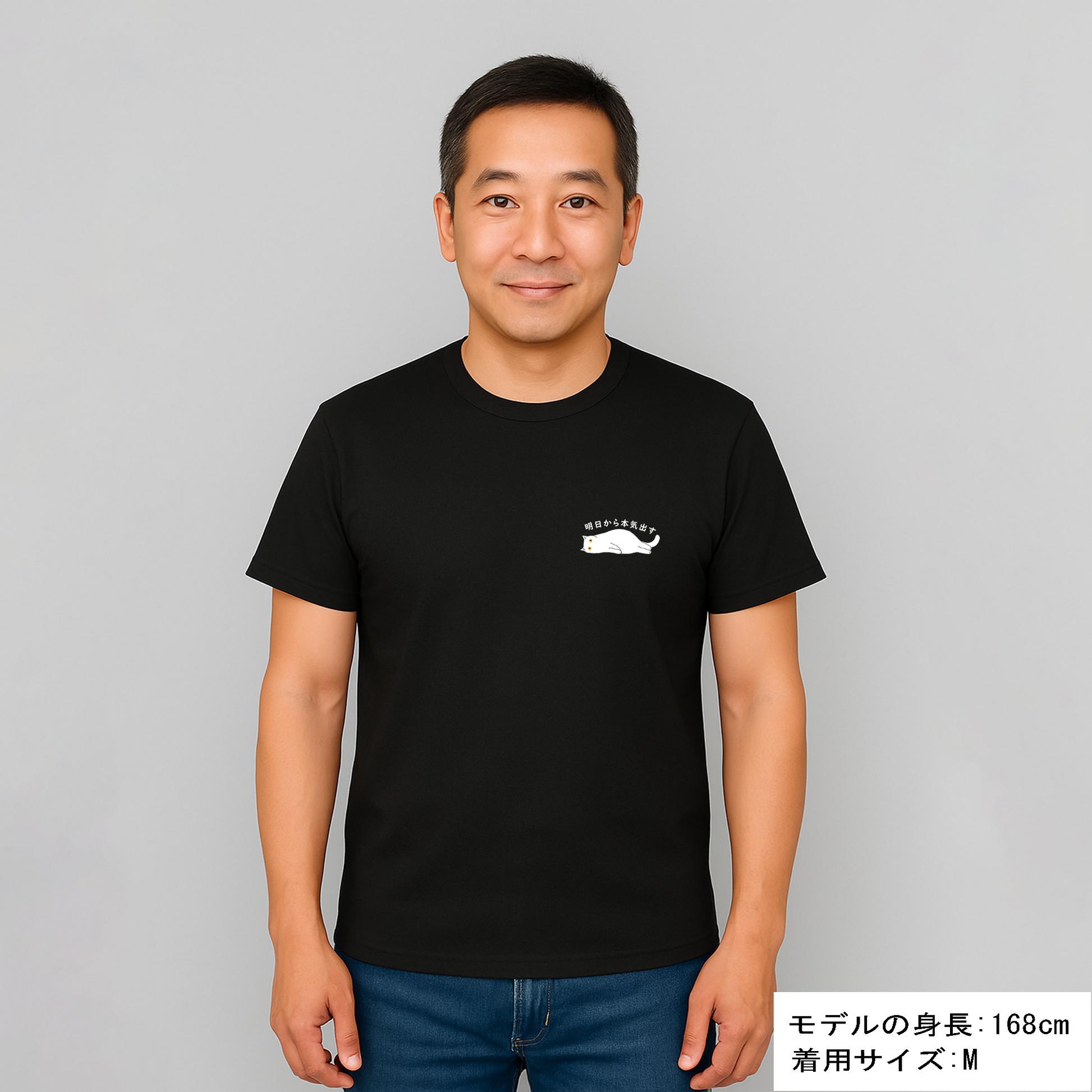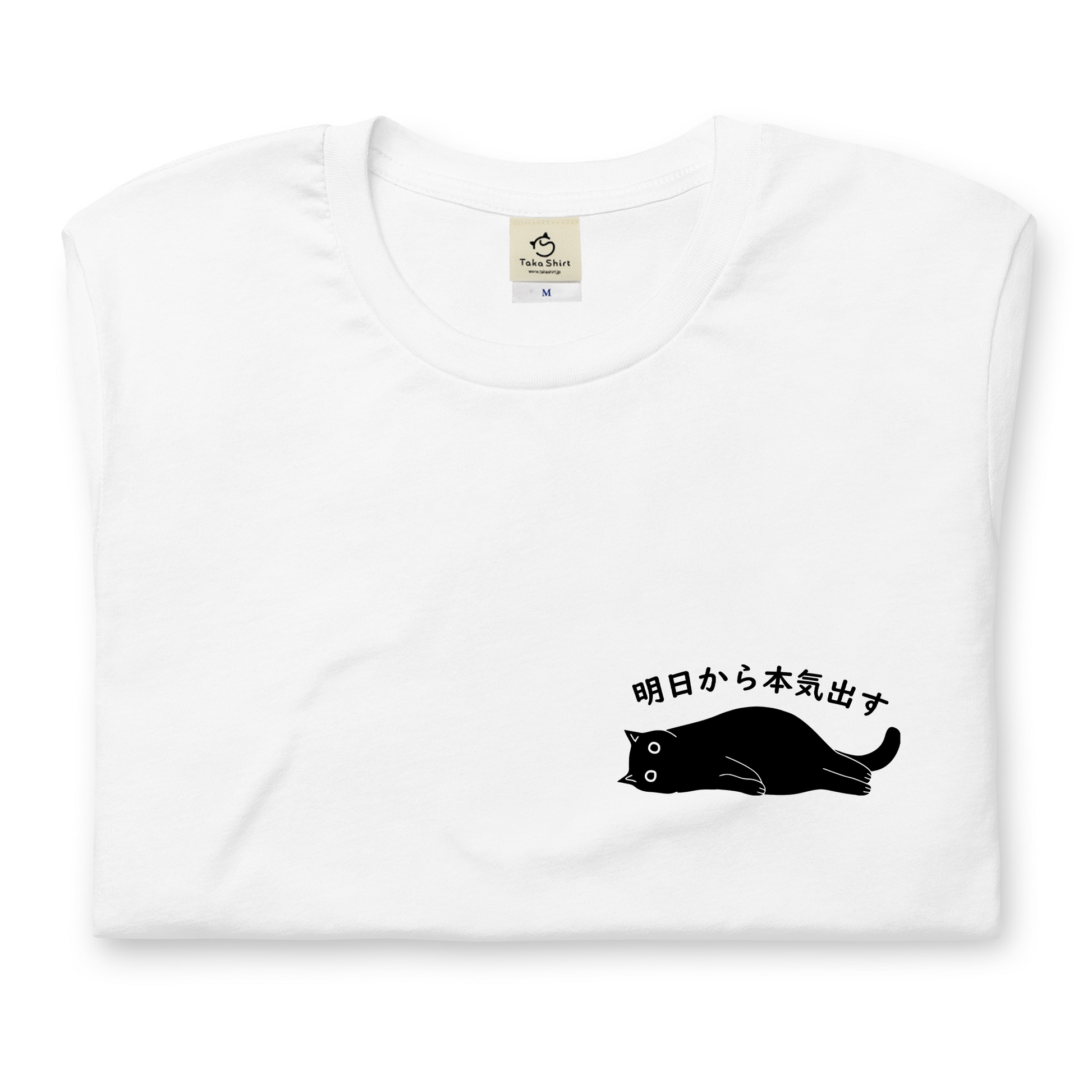 猫tシャツ ねこ かわいい猫イラスト ワンポイント 黒猫 明日から本気だす |アダルト&キッズサイズ