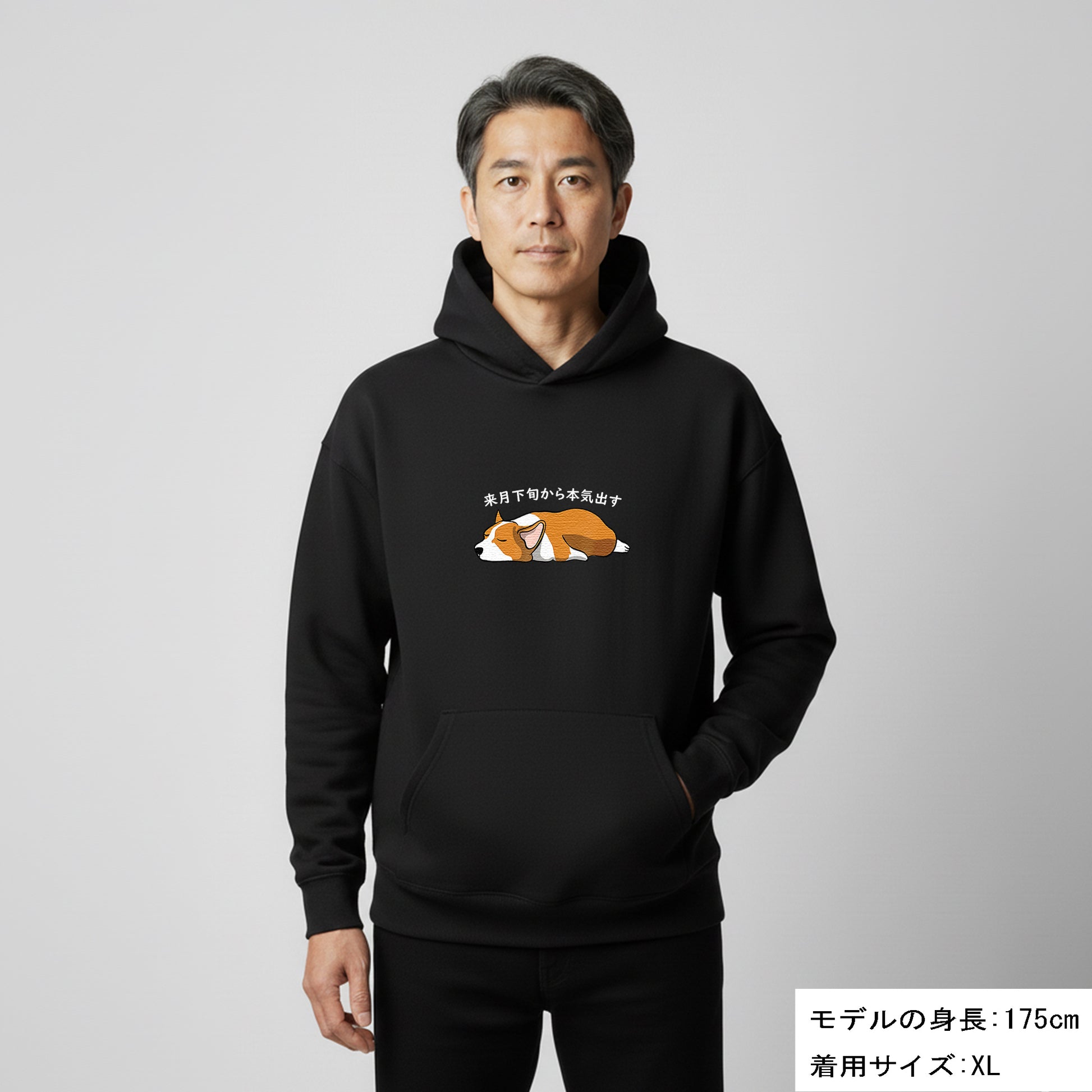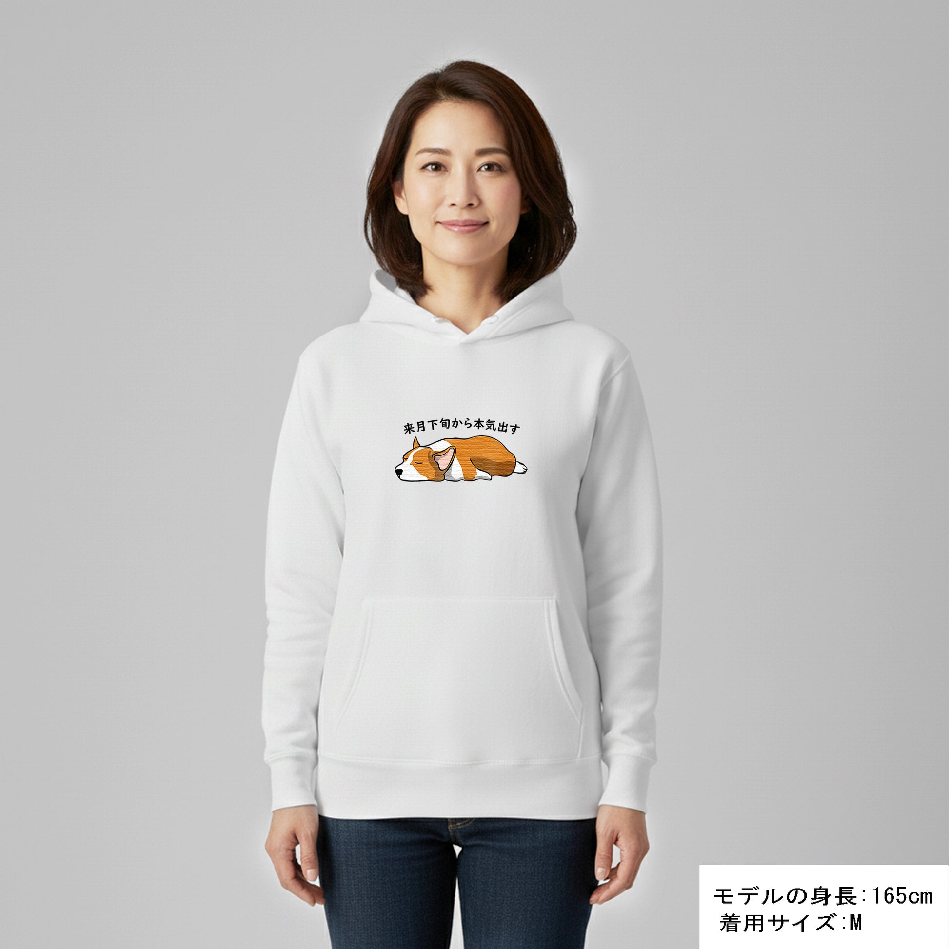 犬 パーカー 犬イラスト いぬ かわいい Corgi犬 コーギー 来月下旬から本気出す