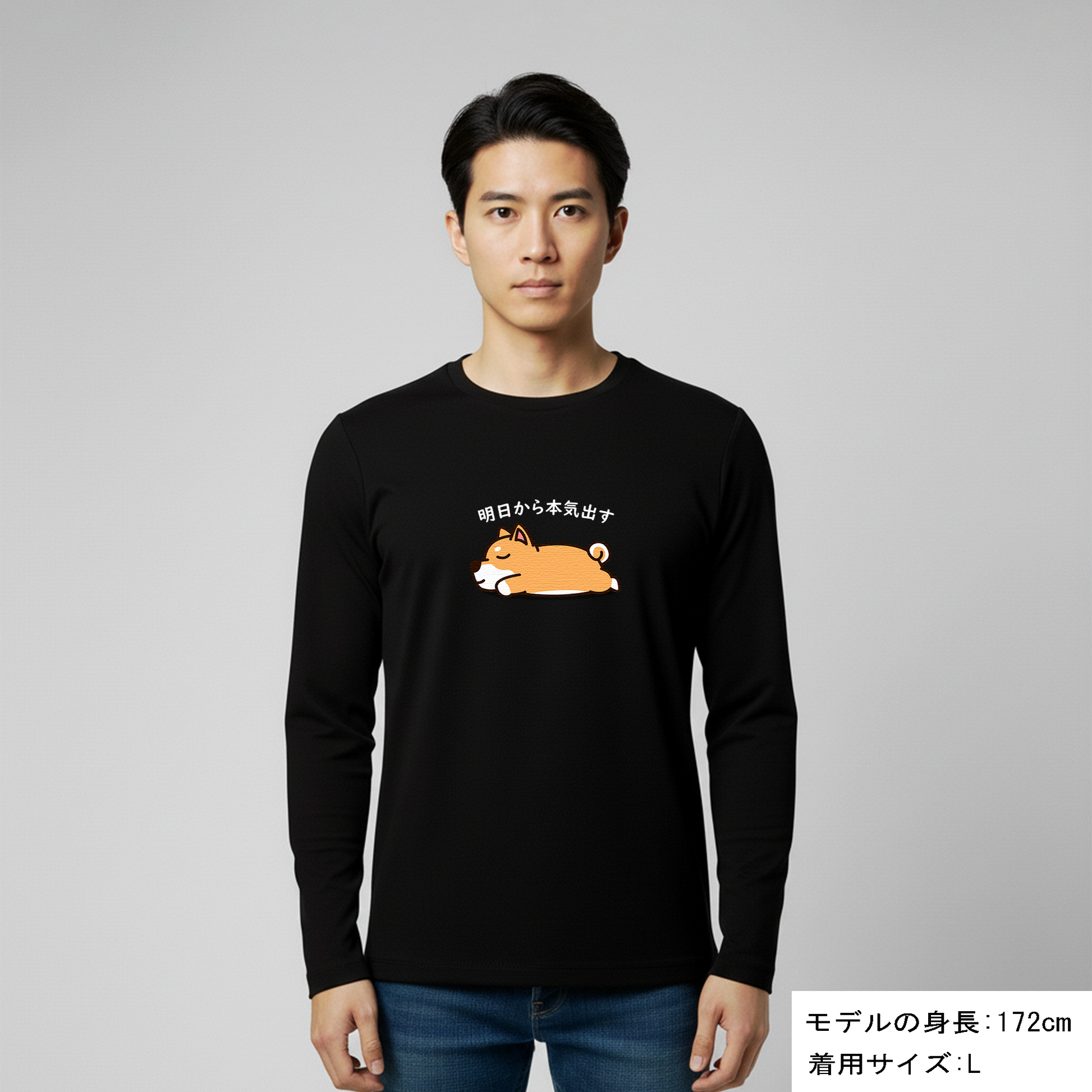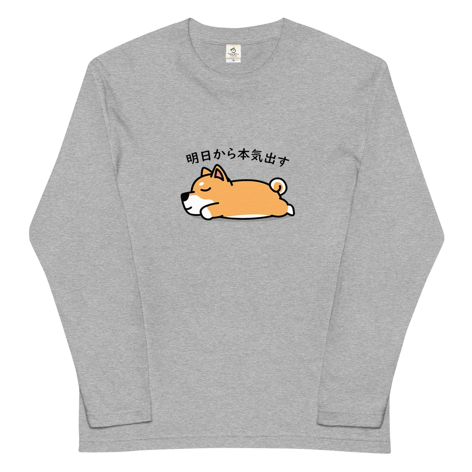 犬 ロン t 犬 長袖 t シャツ いぬ 犬イラスト 柴犬 明日から本気出す 長袖Tシャツ