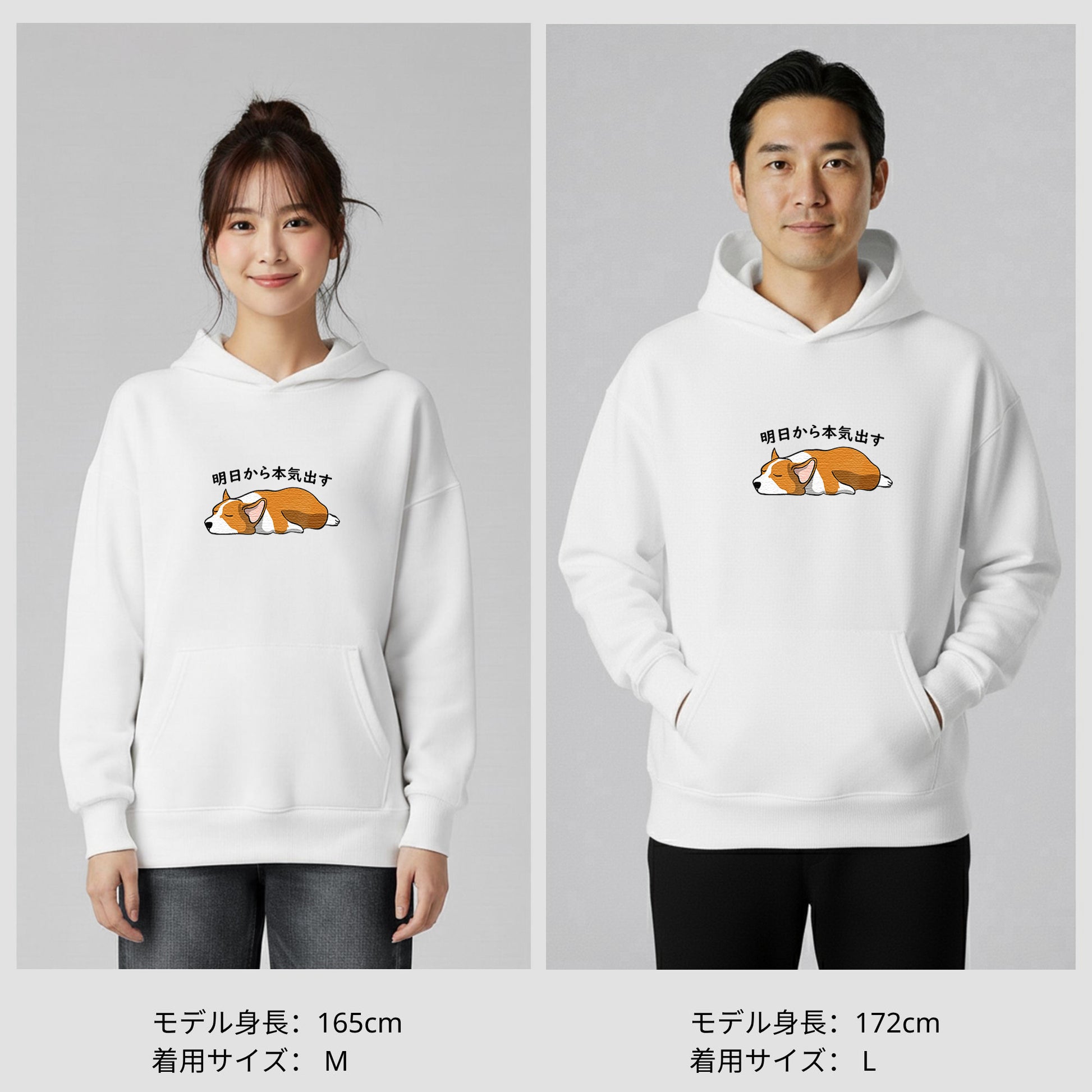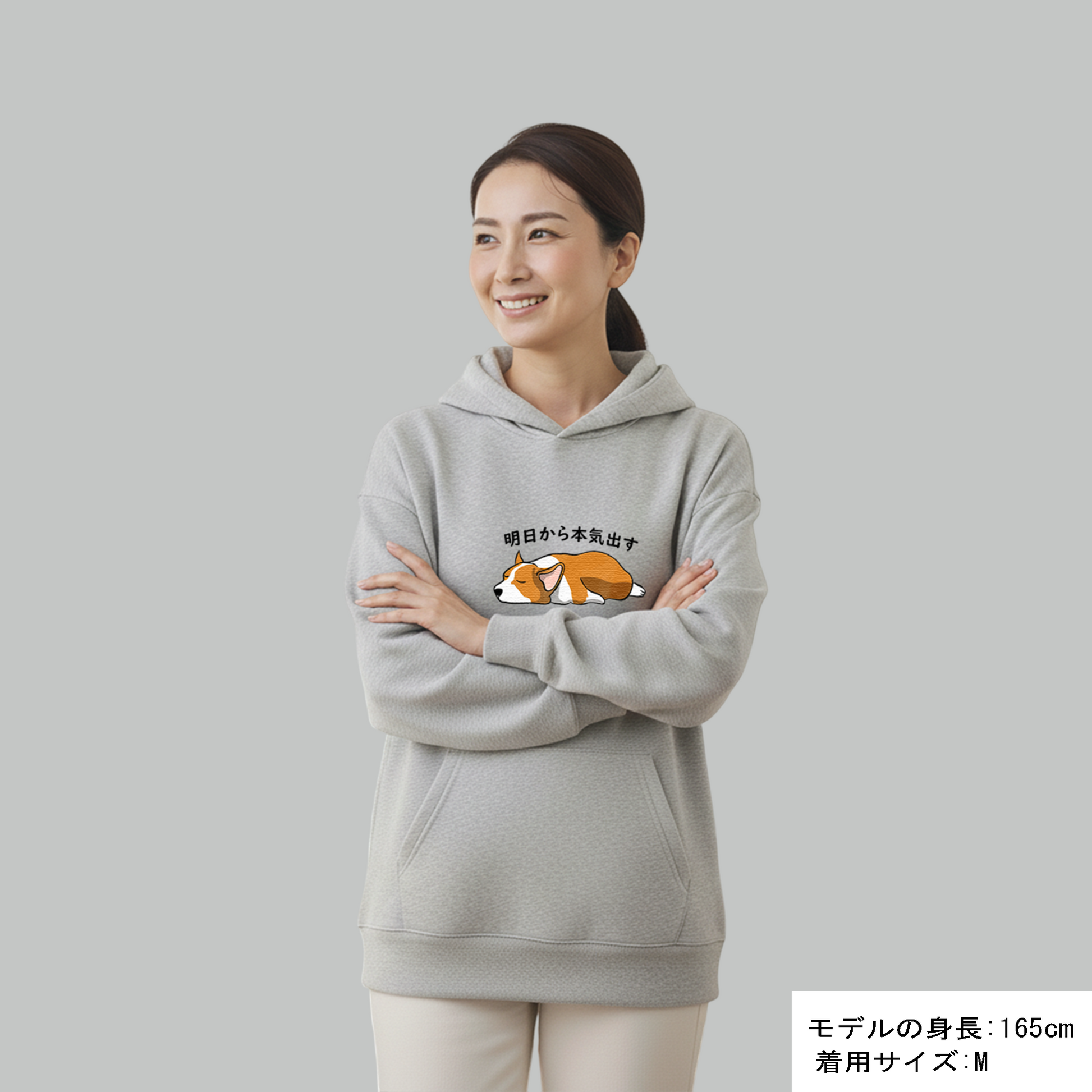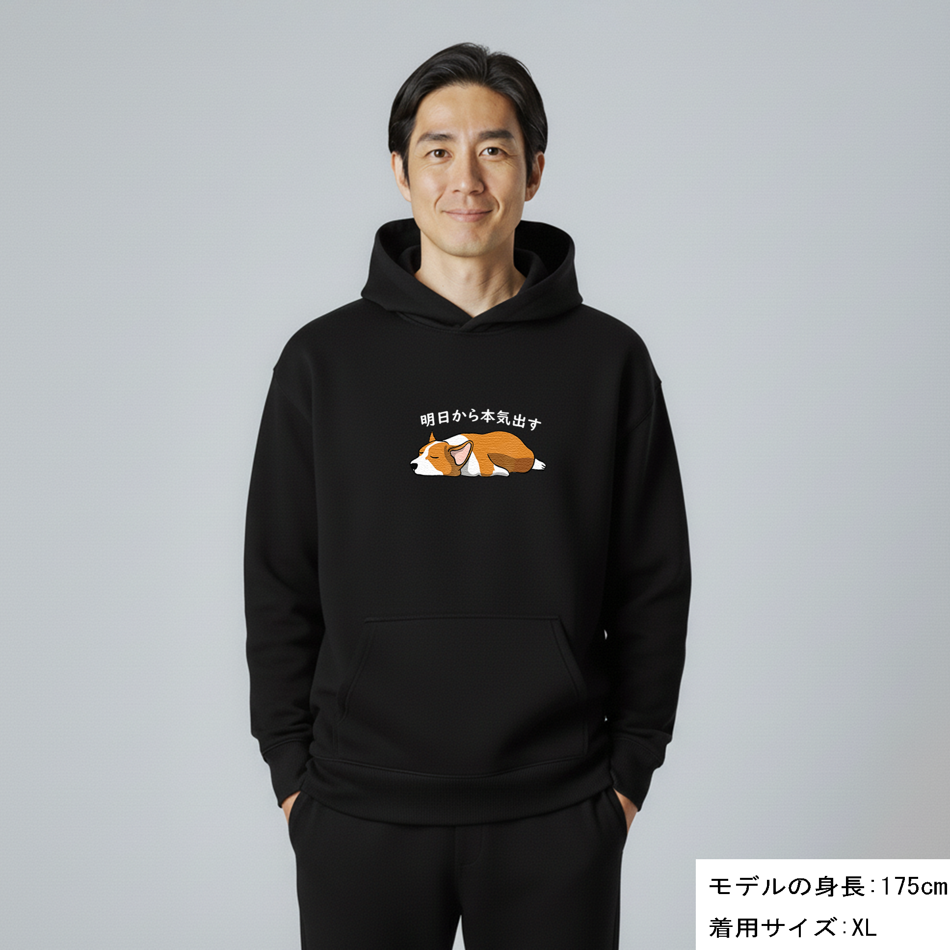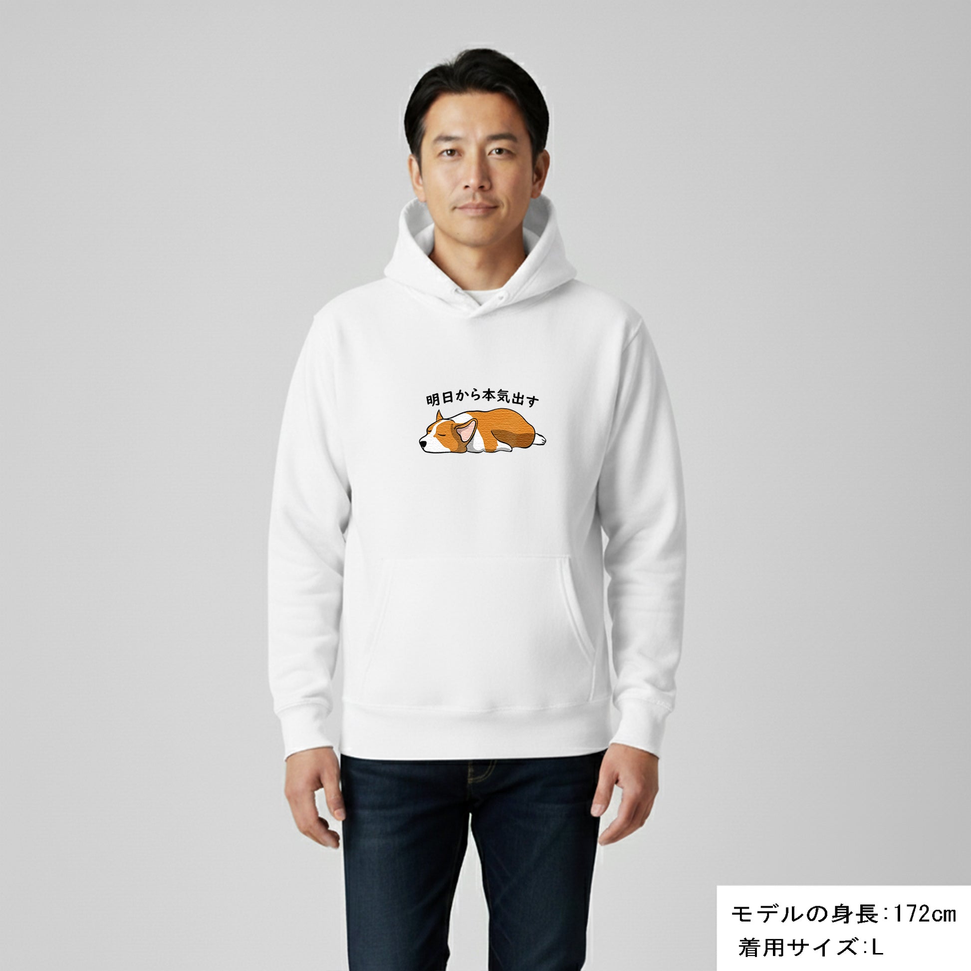 犬 パーカー 犬イラスト いぬ かわいい Corgi犬 コーギー明日から本気出す