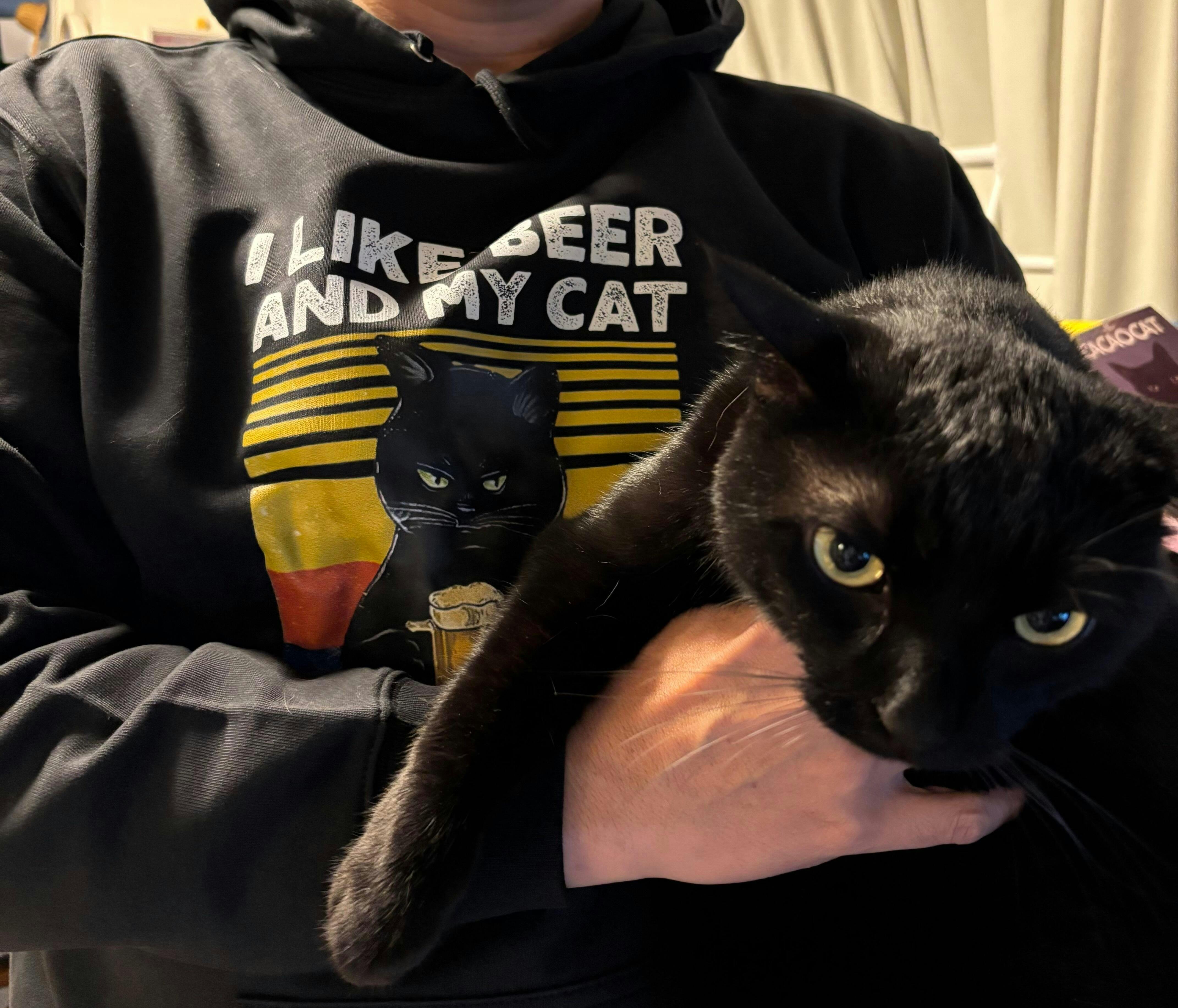 この度は、Takashirtの商品をご購入いただき、誠にありがとうございます。ビールも猫もお好きとのこと、デザインを楽しんでいただけて光栄です。お写真も拝見し、“抱っこでイヤイヤ顔”がそっくりで思わず笑顔になりました。着心地にもご満足いただけたとのこと、末永くご愛用いただけますと幸いです。