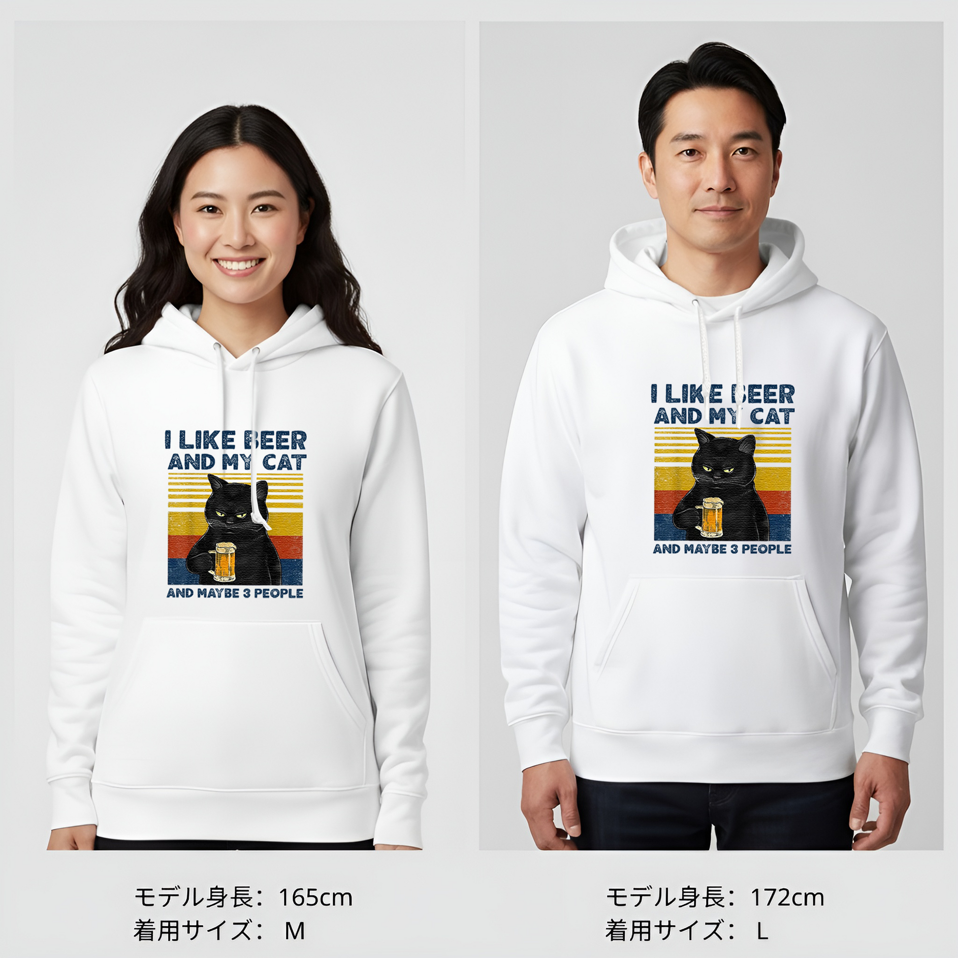 「I LIKE BEER AND MY CAT 」誕生日プレゼントにも最適!居酒屋・飲み会で話題の面白パーカー|日本酒・ビール・焼酎・ウイスキー好きにおすすめ