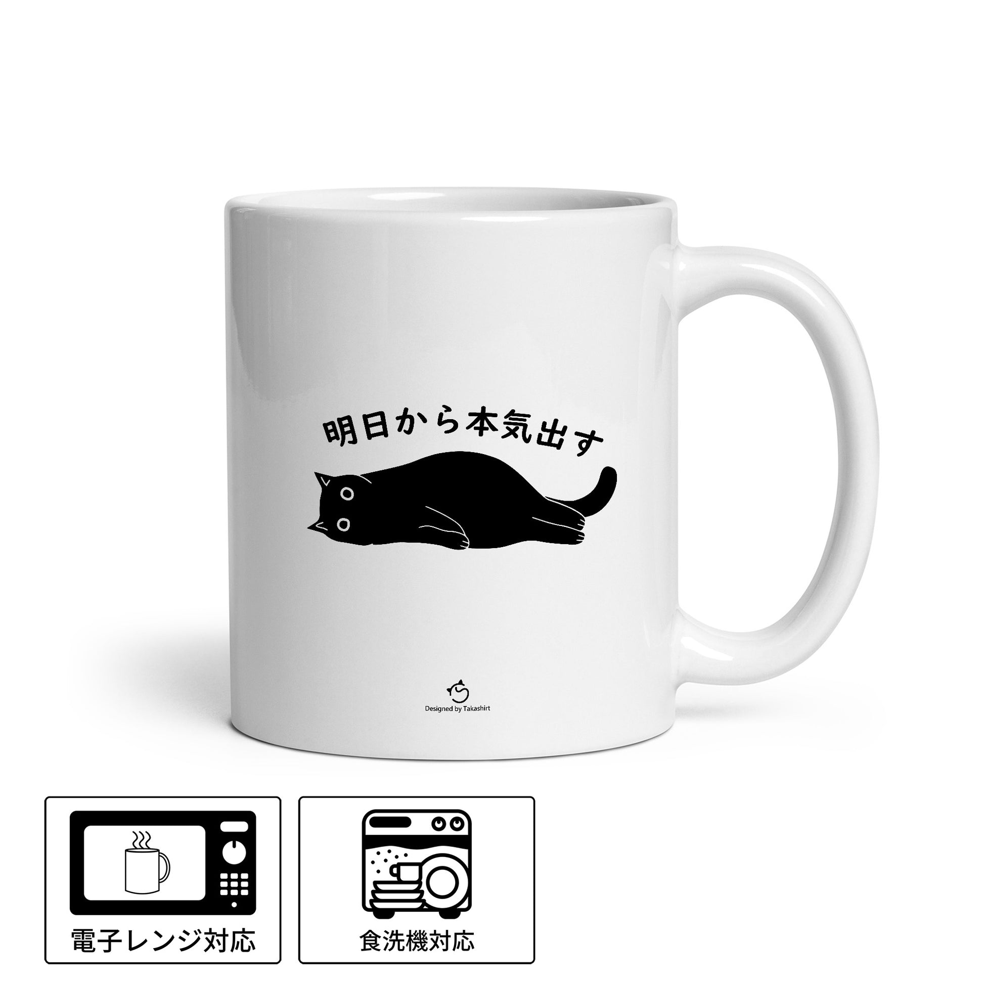 マグカップ 黒猫 猫イラスト 明日から本気出す |猫好きにおすすめの面白い猫グッズ プレゼントにも最適