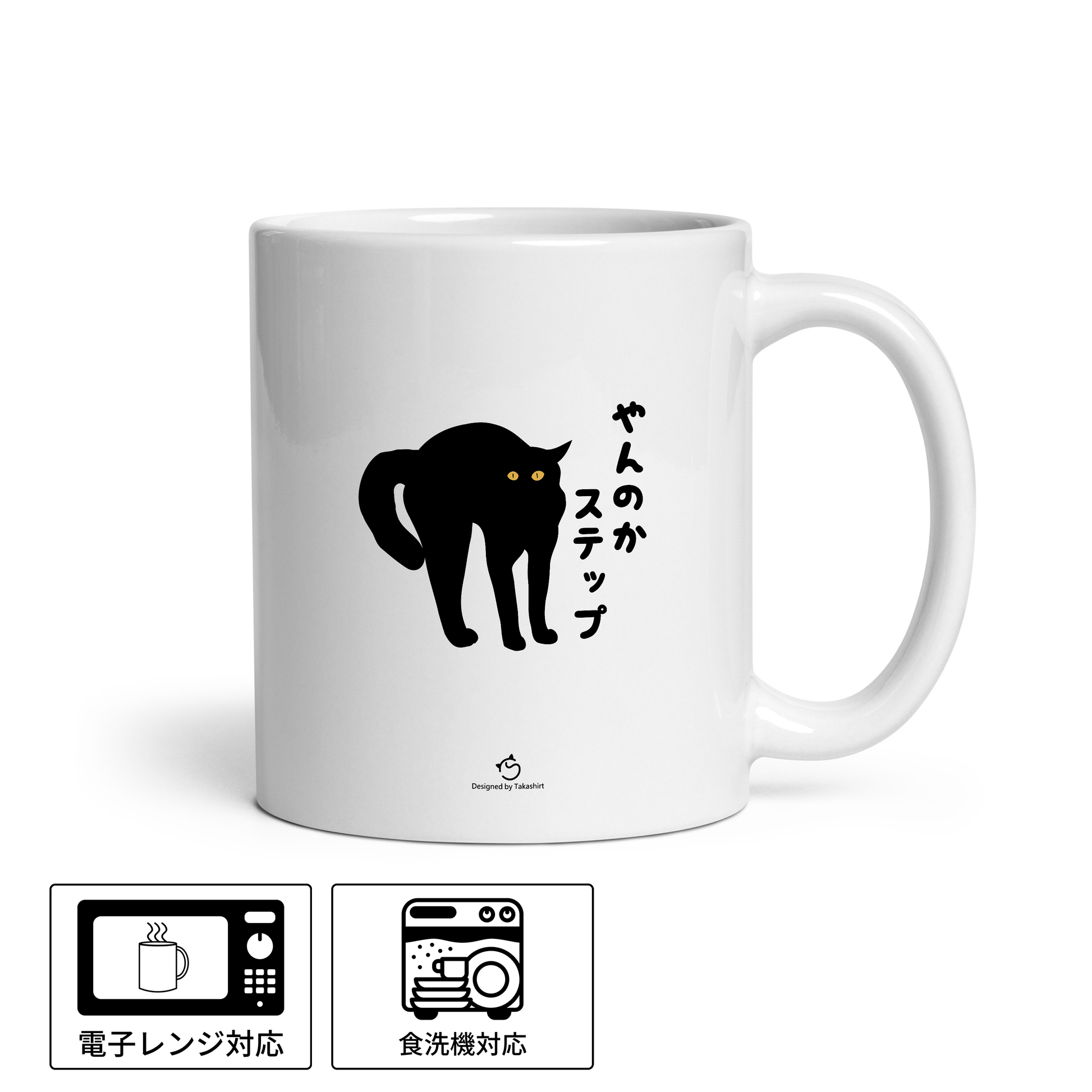 マグカップ 黒猫 猫イラスト やんのかステップ |猫好きにおすすめの面白い猫グッズ プレゼントにも最適